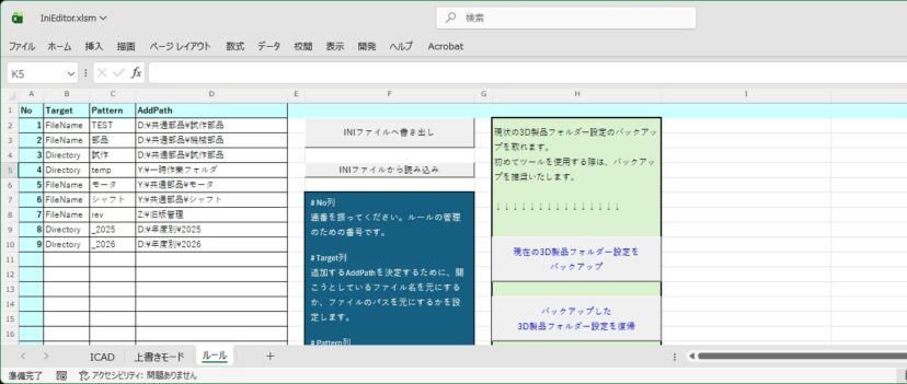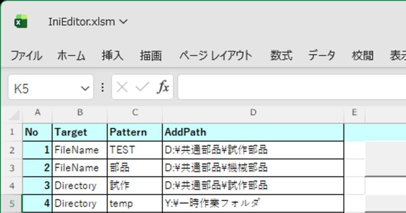 IniEditor.xlsmをダブルクリックして、Excelで開いてください。