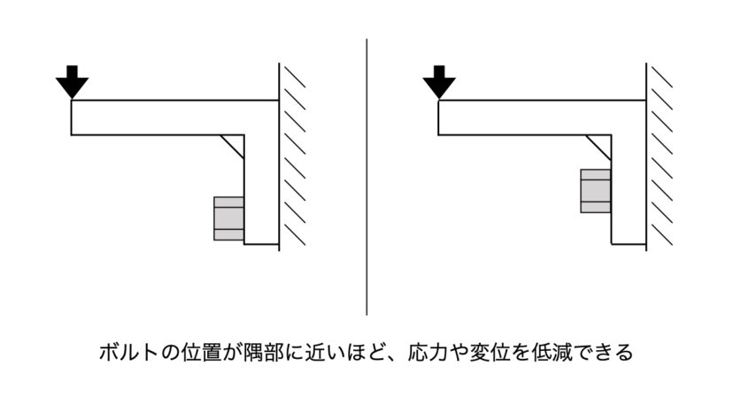 ボルトの取り付け位置は、部品の隅部に近づけた方が、ボルトの引抜き力が少なくなり、ボルト破損のリスクを低減させることができます。