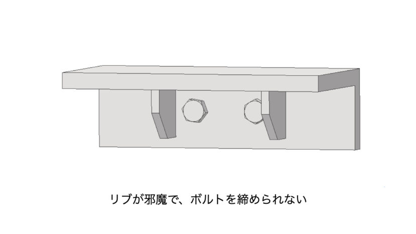 リブをつけるとどうしても部品の取付け・取外し作業がしにくいケースも出てきます。