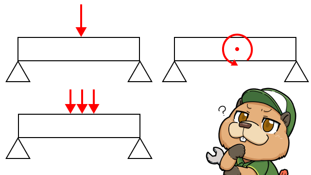 まず、梁にかかる荷重については大きく分けると3種類あることを抑えておきましょう。